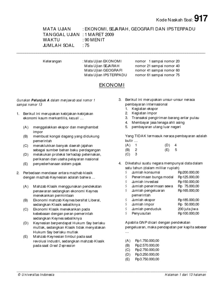These exams are conducted simultaneously throughout indonesia (jakarta, tangerang, bekasi, depok, serang, cilegon, bogor, bandung, cirebon, yogyakarta, surabaya. Kegiatan industri adalah sektor ekonomi yang menghasilkan pendapatan lebih cepat dan lebih besar dibanding kegiatan pertanian. (a) tingkat konsumsi yang tinggi (b) jumlah penduduk yang banyak (c) tingkat inflasi (d) pemerataan penduduk (e) pendapatan per kapita pembahasan: Untuk tahun 2020, kuota penerimaan mahasiswa baru s1 reguler ui melalui simak meningkat drastis menjadi 50% dari total penerimaan. Dimana soal ini diperuntukkan untuk calon mahasioswa ui.so silahkan ciba kerjakan soalm ini.deskripsi lengkap.